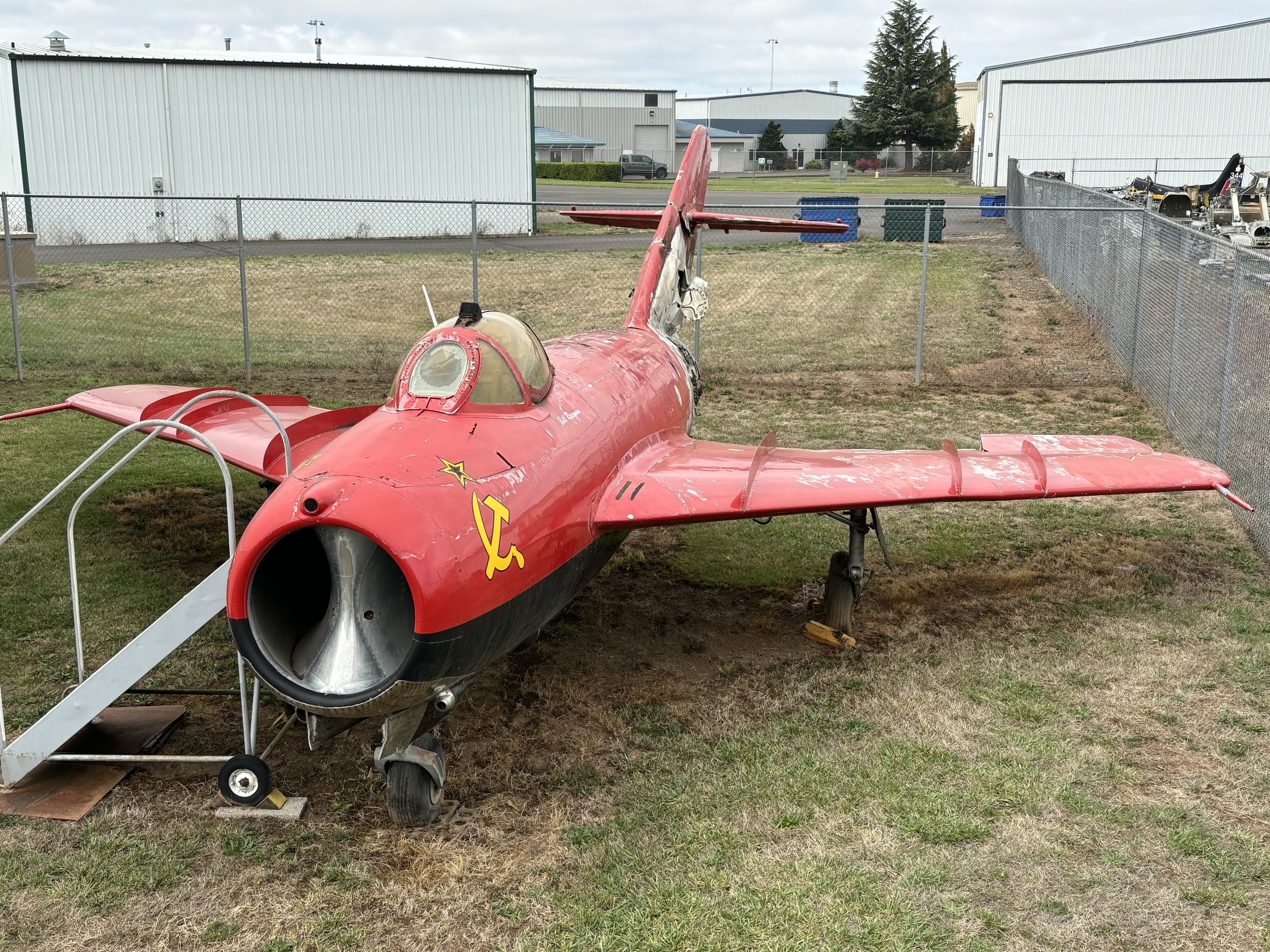 The museum's MiG-17 is actually a Shenyang J-5 license built in China, and was acquired by Bill Reeseman of Aurora, Oregon, in 1992. Bill flew it in his spectacular "MiG Magic" airshow routine. On March 1, 1994, Bill was testing a newly installed engine over Aurora Airport when a fuel line ruptured during a fuel afterburner climb. In spite of a severe fire, Bill elected not to eject and brought the MiG down to a safe but hurried landing.